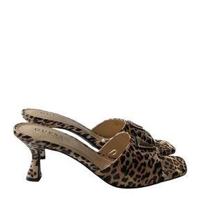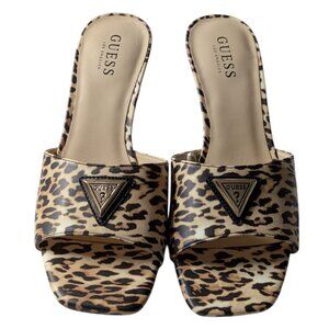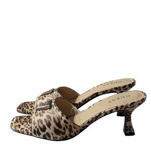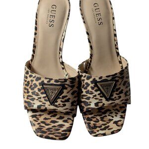 Guess Leopard Print Square Open Toe Logo Detail Kitten Heel Mules Size 9 NWOB