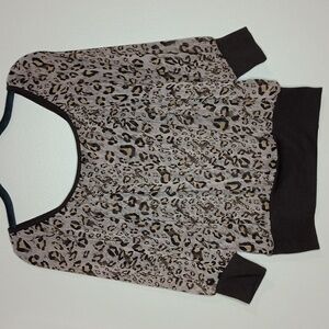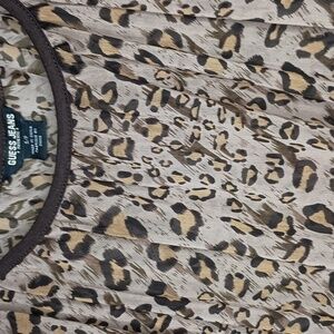 Guess Jeans Lightweight Brown Leopard Print 3/4 Sleeve Top with Dark Brown Trim. Excellent Like New Condition.