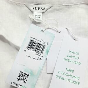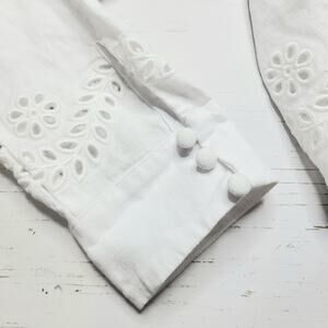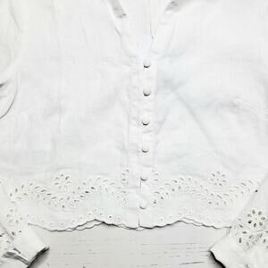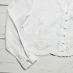 Guess Leyna Embroidered Eyelet Crop Linen Shirt White Scallop Hem Button Medium