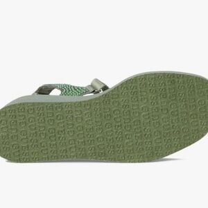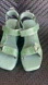Stylish light green wedges with sparkling embellishments. Ideal for fashionable events.