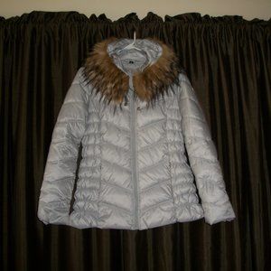 Nice, cozy, super light and warm Guess Water Resistant Light Grey Hooded Jacket.