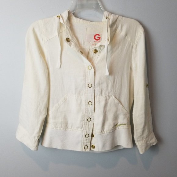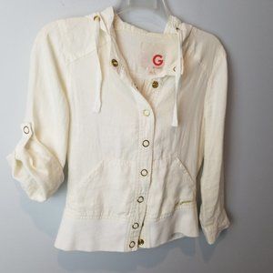 Guess Linen Off White/ Cream Cropped Jacket