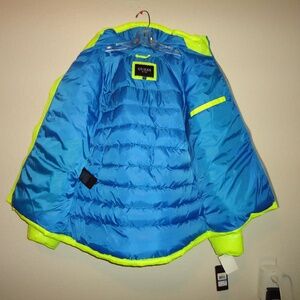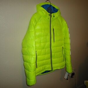 Guess Logo Puffer Hooded Jacket 111AN210 Neon Yellow Men's Size X-Large