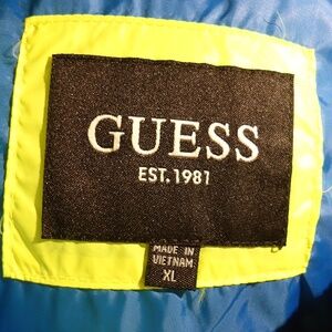 Upgrade your winter wardrobe with this new GUESS Logo Puffer Hooded Jacket in retro neon yellow color. Crafted from durable nylon with solid pattern and mid-length cut, this jacket is a perfect blend of style and comfort. The jacket is men's size X-large and equipped with a zip closure, a hood, and a polyester lining that will keep you warm and cozy in chilly weather.
