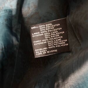 Material: Shell: 50% Wool, 30% Polyester, 10% Rayon | Lining: 100% Polyester