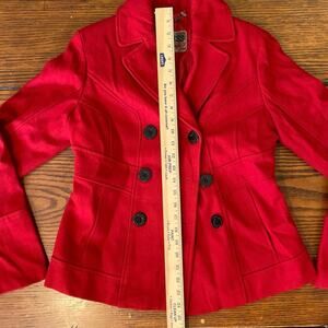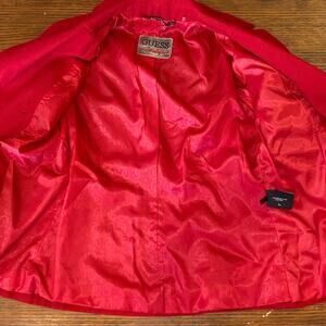 Guess Los Angeles 1981 Wool Blend Coat Size Medium Cherry Red Thick Collared EUC