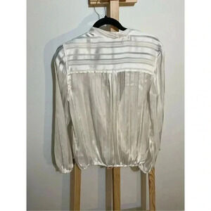 This is a very light and partial sheer shirt has a button closure and attached tie. This is used in good condition. Shiny and elegant f