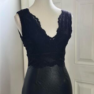 Guess Los Angeles Black Faux Leather Lace Bodycon Dress Women’s XS