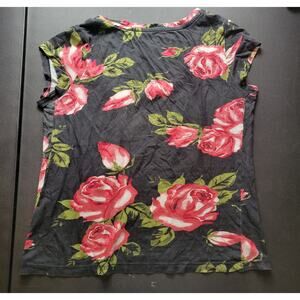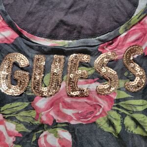 Guess Los Angeles Black Floral Scoop Neck Tee - Size Small