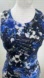 Features a vibrant blue, white, and black floral print, asymmetrical hemline, and a back zip closure.