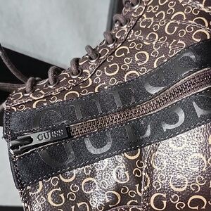 GUESS Logo Print Women's Lace-Up Brown Tan High Faux Zippered Boots Size 8