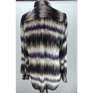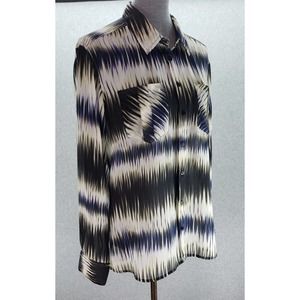 Guess Los Angeles Button Up Top Sheer Womens Size L Black Multi Abstract Print