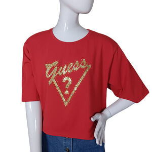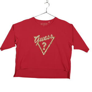 Guess Los Angeles Crop Tee Size XL Red and Gold Graphics Short Sleeve
