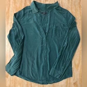 Guess Los Angeles Women’s Emerald-Colored, Long-Sleeve Button-Down Shirt in Size Medium. One Front Chest Pocket, Guess Emblem on Mid-Upper Back. Sleeve Hems Can Be Rolled and Buttoned to Create a 3/4 Sleeve.