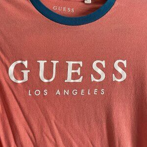 Guess Los Angeles Men SZ S Orange w/Teal Trim Short Sleeve Graphic T-Shirt