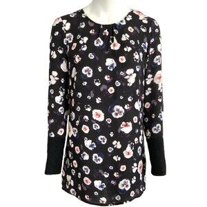 Guess Los Angeles Multi BlackPansies Open Back Long Sleeve Top M