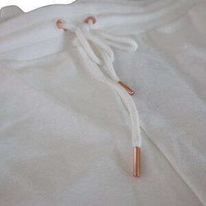 Guess Los Angeles NWT White Cream Athletic Casual Joggers with Rose Gold Glitter