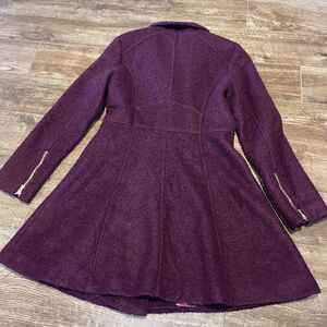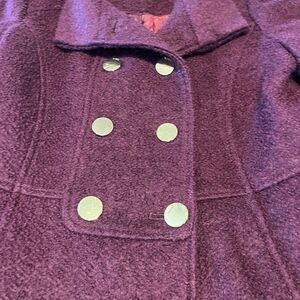 Guess Los Angeles Pea Coat Women’s M Burgundy Wool Blend Double Breast