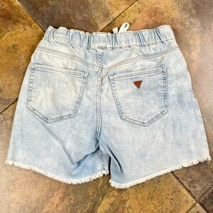 Guess Los Angeles Pull-on Fringe Bottom Shorts Small. There is a small stain on the shorts. Please see photos. Measurements in photos. In good, pre-loved (used) condition.
