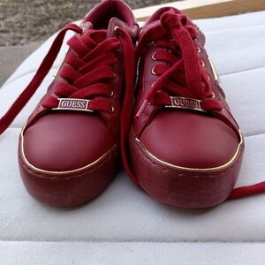 Stylish Guess sneakers. Bold red color. Comfortable design.