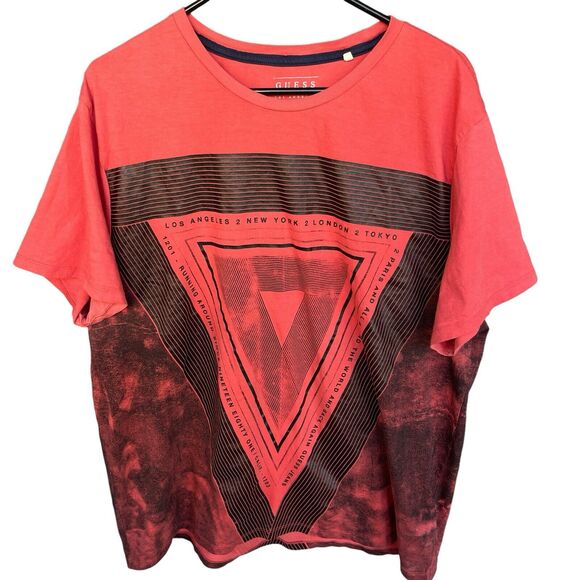 Guess Los Angeles Shirt Mens 2X XXL Red Cotton Short Sleeve Double Sided Y2K