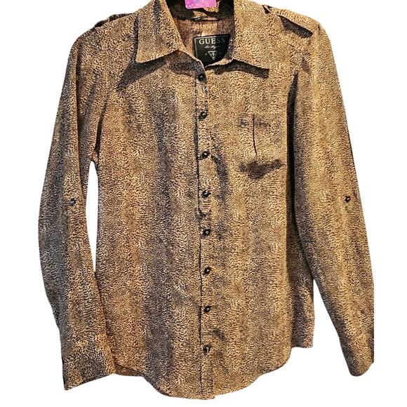 Guess Los Angeles Size Small Animal Cheetah Print Lightweight Blouse Button Up