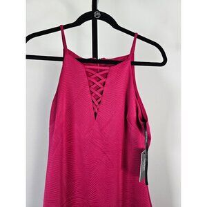 The Guess Los Angeles Spaghetti Strap Dress is a stylish and trendy choice for parties or cocktail events. This sleeveless dress features a solid pink color, strappy sleeves, and a short length, making it perfect for warm summer and spring days. Made of polyester, it is easy to wear and care for, and the zip closure adds a touch of convenience. The bodycon style of this dress from the renowned brand Guess flatters the figure, making it a must-have in any woman's wardrobe.