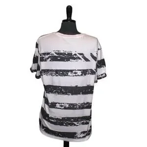 Guess Los Angeles Striped Logo T Shirt Black White Cotton Size L