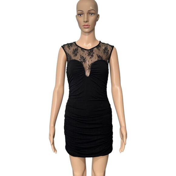 Guess Los Angeles Witchy Black Lace Ruched Bodycon Dress (L)