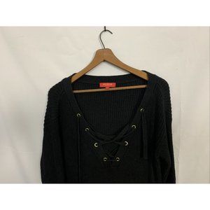 Guess Los angeles womens lace up black long sleeve thermal Blouse Top.