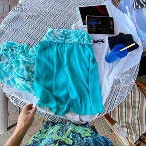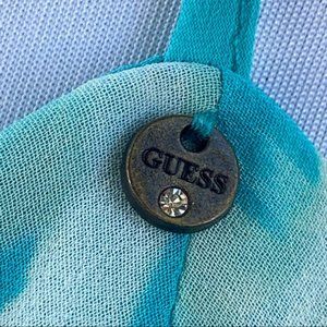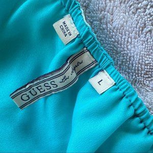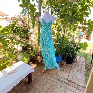 Guess Los Angeles long aqua and white spaghetti strap elastic waist dress sz L