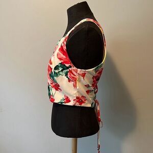 Guess Los Angeles Women's Multicolor Floral Tie Back Cropped Top Medium