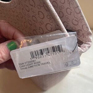 Guess Insulated lunch tote. Light pink guess logo print. Plenty of room to put your lunch or other foods or bevies for a light insulation.