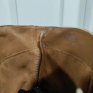 Some scuffs and creases on surface. Heel height = 3.5 inches, shaft height = approximately 16 inches.