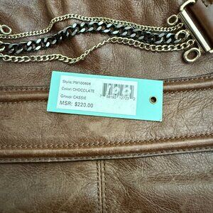 Guess Marciano Cassie Chocolate Leather Shoulder Bag with Chain Detail