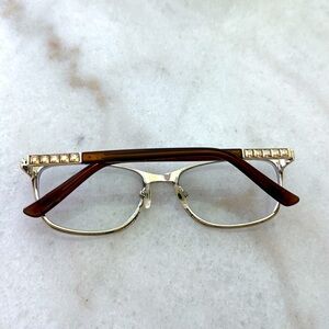 Guess Marciano GM 248 Brown and Gold Embellished Eyeglasses Frames 53 17 135 in very nice used condition. These frames have old lenses in them and will need to be replaced with your correct prescription. These Guess frames are a dark brown metal frame with gold glass embellishments on the temples of the arms. They are lightweight and have a full rectangular frame that compliments most faces. No case but will ship with care 🤓