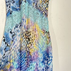 Guess Marciano Long Maxi Dress Blue Leopard Chiffon Lace Designer 42 US M New
