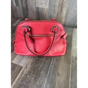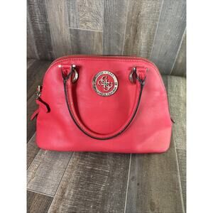This red dome-shaped satchel by GUESS is the perfect accessory for any occasion. With a zippered closure and double handles, this medium-sized bag offers both style and functionality. The bag features a coated finish, gold-plated hardware, and a bag charm accent.