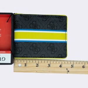 Guess Men Dinate Signature Stripe Quatro-g Print Rfid Wallet - Black/Green