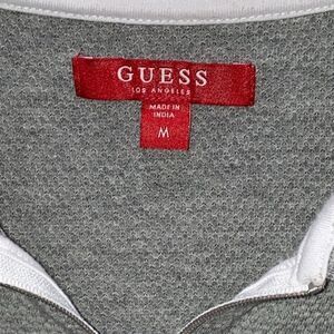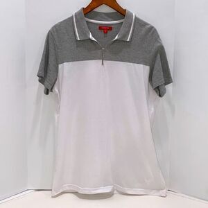 Guess Men's 1/4 Zip Casual Polo Gray & White Short Sleeve Shirt Size M