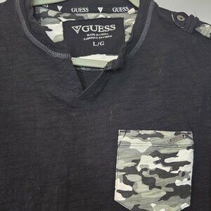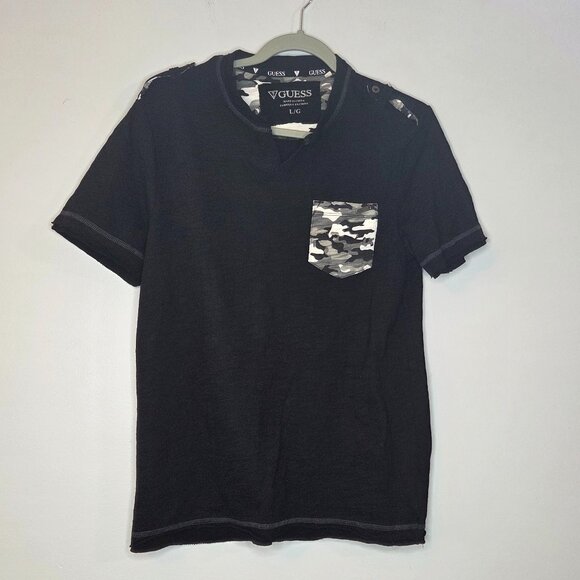 Guess Men's Black T-Shirt w/ Camouflage Pocket, Size L