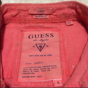 Guess Men's Button Down Long Sleeve Shirt Size Small Logan Reg Fit faded red color has a flaw below pocket not very noticeable included pic measurements taken laying flat: 27" length from shoulder 19" armpit to armpit