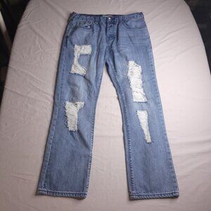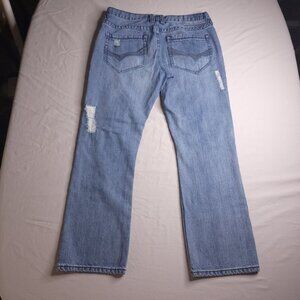 Guess Mens Calan Low Straight Leg Jeans 33 Light Wash Button Fly Distressed