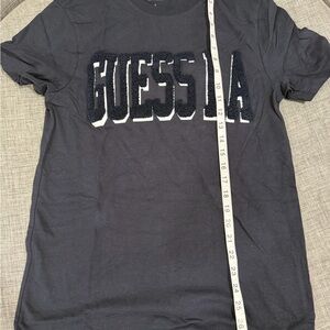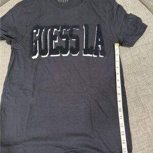 Casual short sleeve tee with bold Guess LA embroidery. Soft fabric for everyday wear.