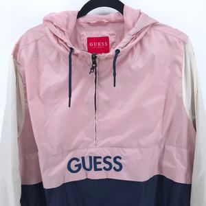 Guess Mens Colorblock Hooded Half Zip Pullover Windbreaker Zipper Front Pocket L