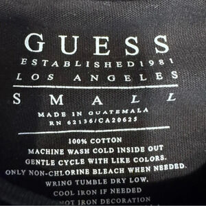 Excellent condition. Men’s Guess tee shirt. Black, short sleeves, quilted embossed logo. Size small. See photos for measurements
