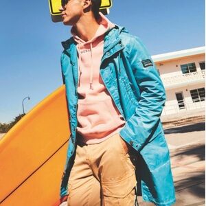 Guess Men’s Fluid Nylon Parka Coat Jacket Size XXL Blue Shore Zip Snap Hoodie