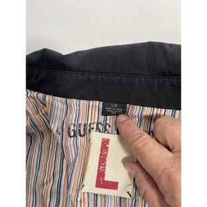 Guess Mens Full Zip Jacket Sz Large Black Zipper Pockets Lined Button Cuffs