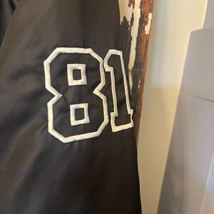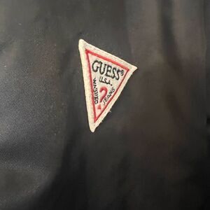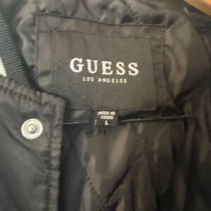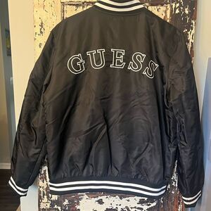 Guess Mens Large Satin Varsity Bomber Jacket Full Zip Snap 81 Spell Out Logo L