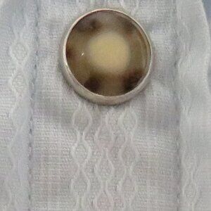 Pre-Owned Condition! 100% Cotton. Handsome Light Blue Snap Down Double Chest Pocket Long Sleeve Dress Shirt with Snap Down Cuffs and Detailed Stitching. Light Blemish on Front(see photo).